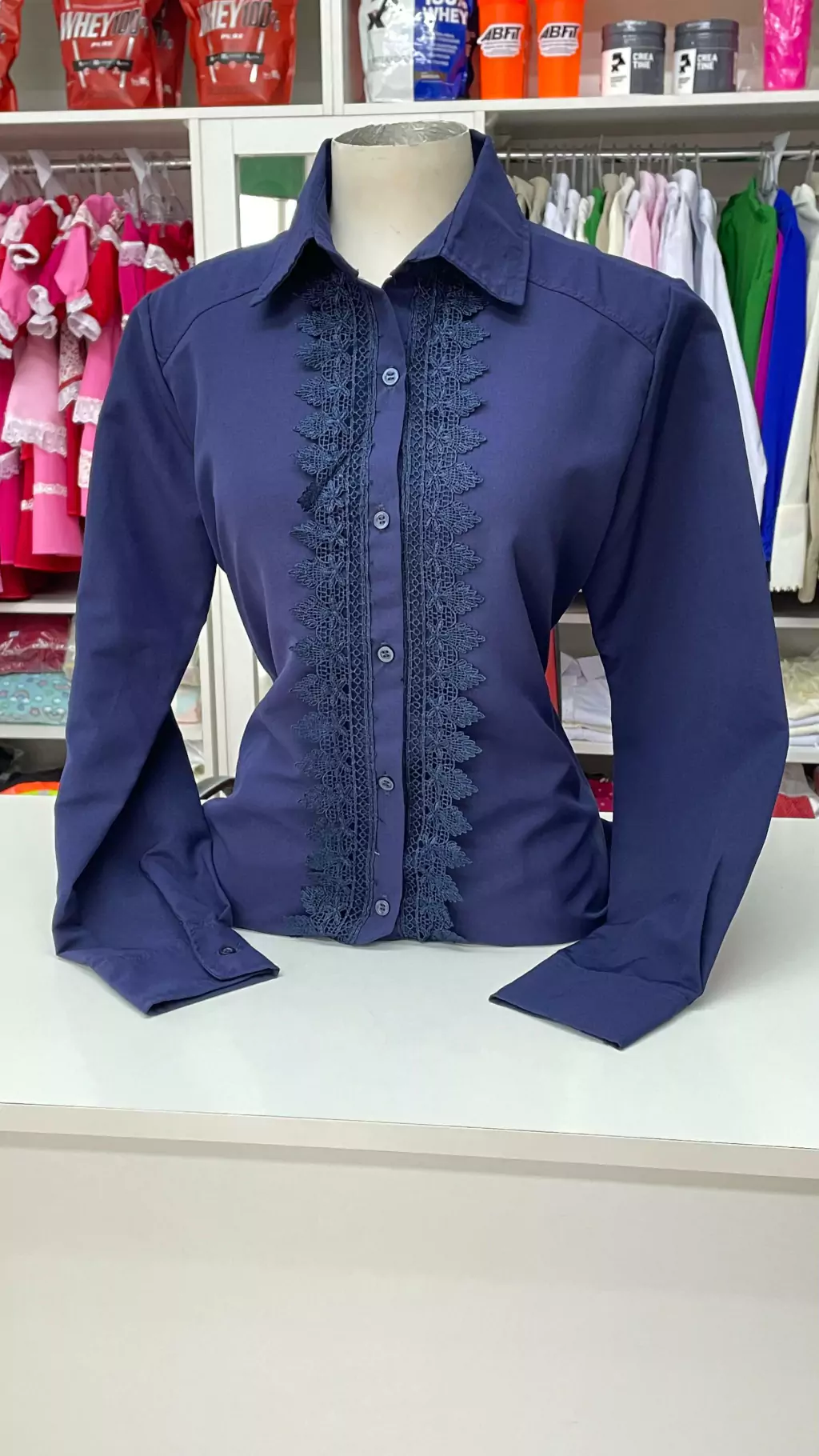 Camisa feminina confeccionada em Tricoline com elástano que se aperfeiçoa perfeitamente ao corpo.